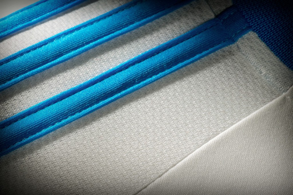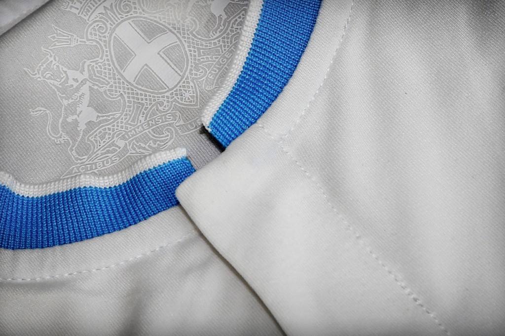 The 2015/16 Marseille home jersey uses what the club calls a “sober” design that uses the club’s traditional white with light blue accents. It features a ribbed Mandarin collar with hidden buttons along with an encircled team crest.
