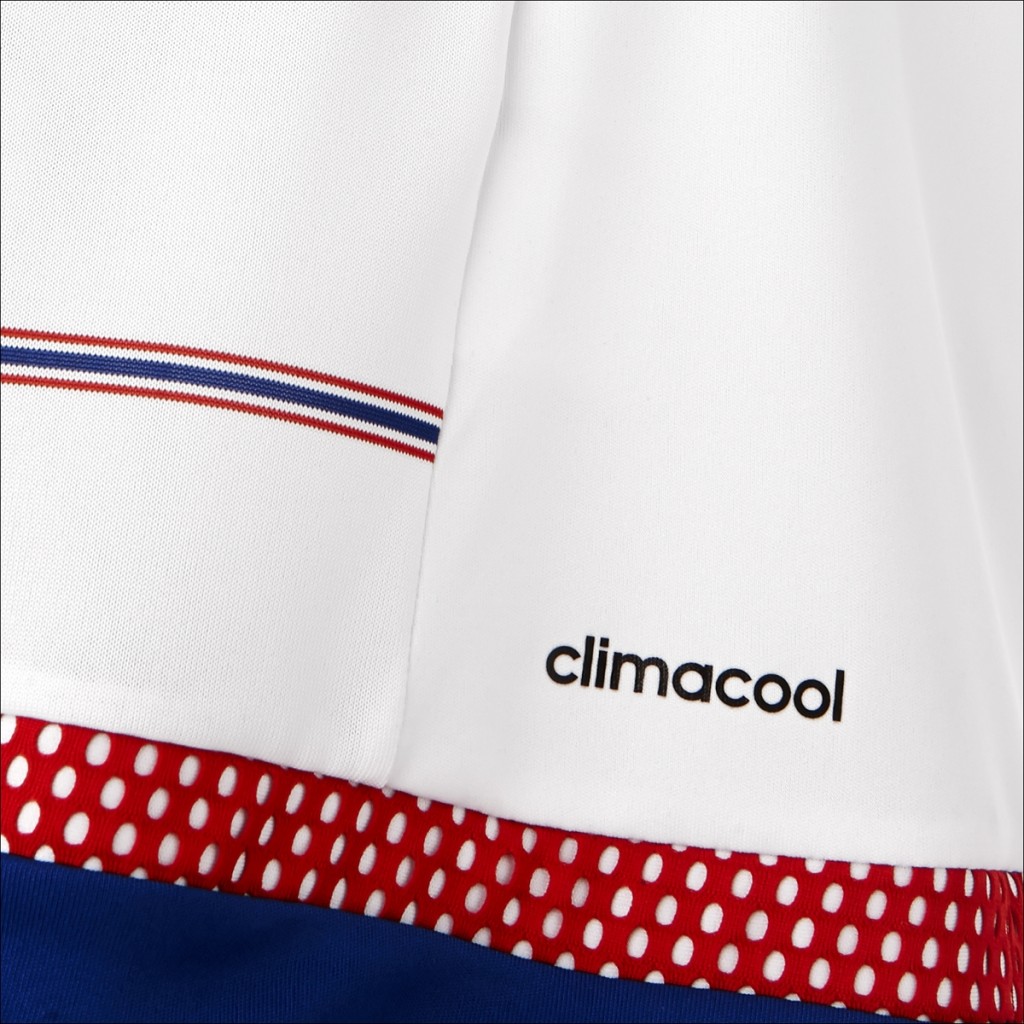 The 2015/16 Olympique Lyonnais continues the pure OL tradition and is a white shirt with fine blue and red trim that enlivens the elegant shirt. The red and blue bands on the sleeves and front of the shirt reinforce the feeling of belonging to this ambitious and modern club.