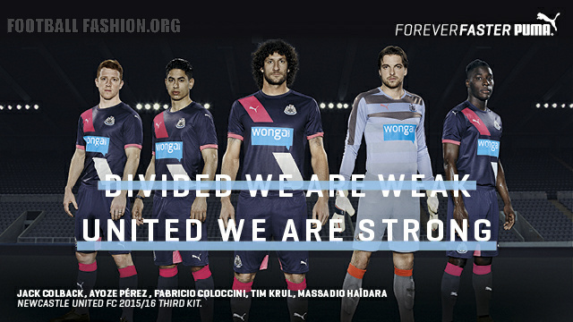 Newcastle United Football Club today revealed their 2015/16 third kit from technical partner PUMA. The Magpies alternate for next season will be on sale at World Soccer ShopSubside SportsKitbag, UK Soccer ShopJD Sports and Sports Direct along with their popular new home jersey.