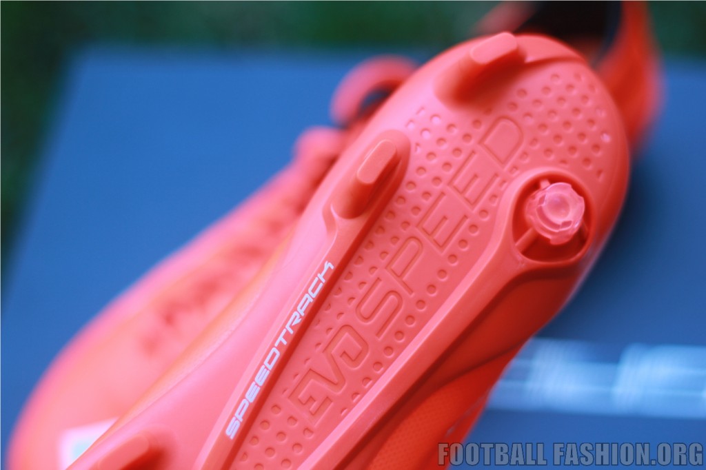 Thanks to its extremely lightweight design, the innovative and ground-breaking evoSPEED SL for firm ground is a special shoe designed for special moments. The ultra-thin textile upper provides a close touch to the ball, while the minimalistic SPEEDFRAME structure delivers the required support for quick turns. The super lightweight nylon outsole with a Speedtrack spine together with a new stud configuration offers the perfect balance between traction and acceleration.