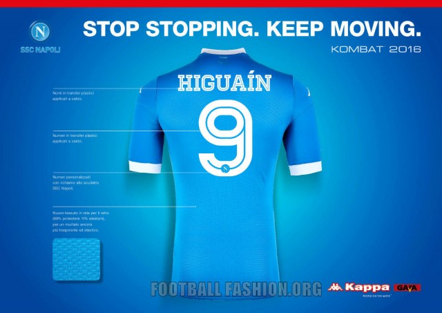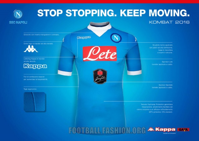 SSC Napoli today presented their home kit for their 2015/16 Italian Serie A, Coppa Italia and UEFA Europa League seasons. It is provided by new Gli Azzurri (The Blues) technical partner Kappa.