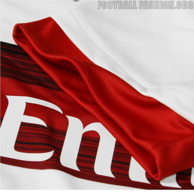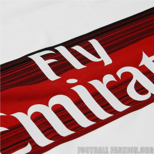 According to adidas: White as the jerseys of the Club’s most important international victories, the away jersey features a V-neck collar and a special pattern on the front, which is consistent with the latest styles of AC Milan and Casa Milan, the brand new Rossoneri headquarter. The red striped pattern is inspired by images which are “shuffled over time” and are a symbol of dynamism and movement.