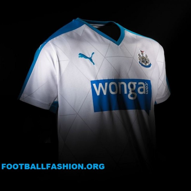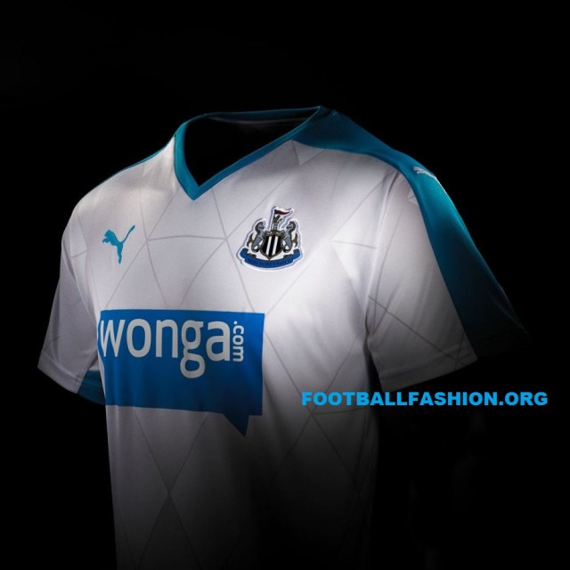Newcastle United says the their 2015/16 PUMA away kit makes uses of a geometric 1990s inspired graphic to provide a different look from their home and away jerseys. It also pays homage to what is now called the ‘Entertainers’ era when NUFC managed three top three Premier League finishes with squads that featured the likes of David Ginola, Les Ferdinand and Alan Shearer.