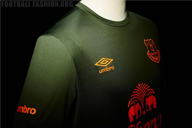 The kit comprises of a green crew-neck jersey with the Everton FC crest and Chang logo in a contrasting, striking orange, with black shorts and green socks. Look out for more imagery of the kit later on Friday.