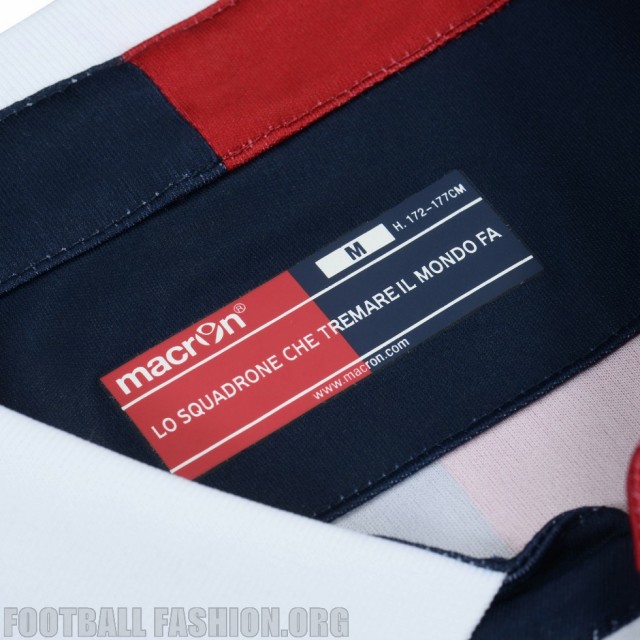 The Bologna FC 2015/16 Macron home and away shirts use classic design featuring a stylish white ribbed polo collar that is trimmed in the team’s red and blue.
