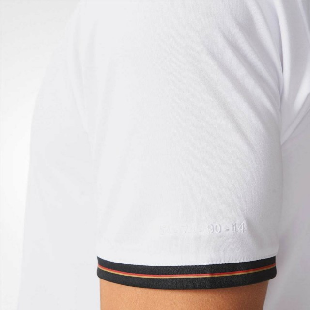 “The jersey represents success, and the classic colours fit perfectly together”, says the captain of the national team, Bastian Schweinsteiger. For the first time, the famous adidas three stripes on the jersey are not on the sleeves, but rather shown on the side. Black-red-gold details decorate the seam.