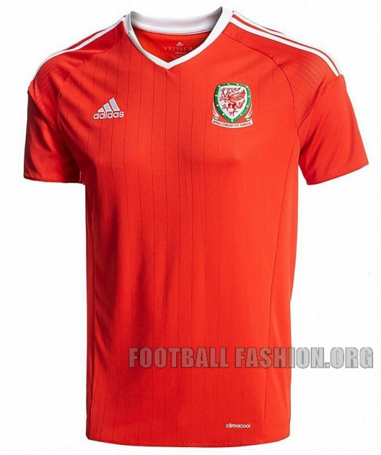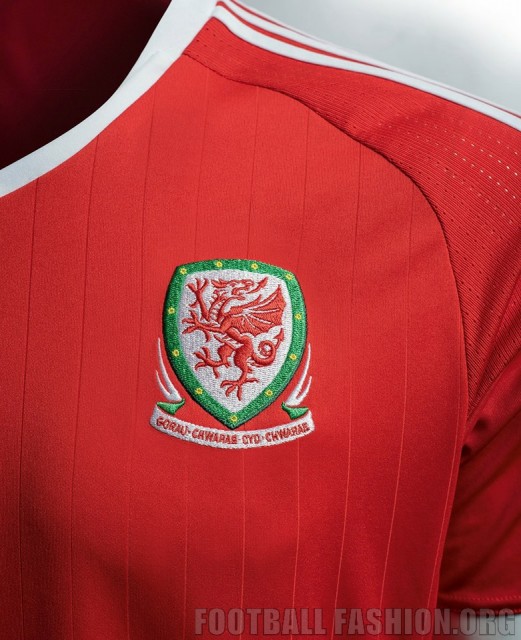 According to adidas, the Wales EURO 2016 home shirt’s design is focused on tradition, combining a red base colour with a retro and subtle drop needle thread effect running through the fabric. The clean and classic design is set to be a fan favorite as Wales prepare for their first major European competition in over 30 years. The latest Welsh home jersey is matched with white shorts and red socks.
