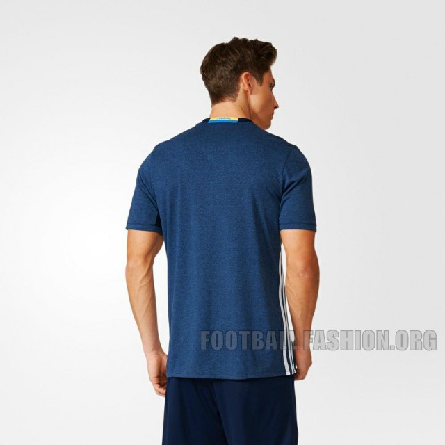 The Sweden EURO 2016 adidas way jersey sees the one-time World Cup finalists in a novel crewneck shirt with a denim look navy blue base. The top front half of the kit features three shades of gray with that have been given a stone feel.