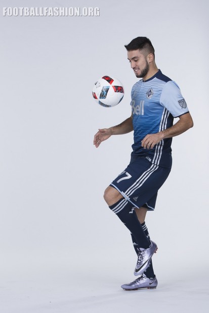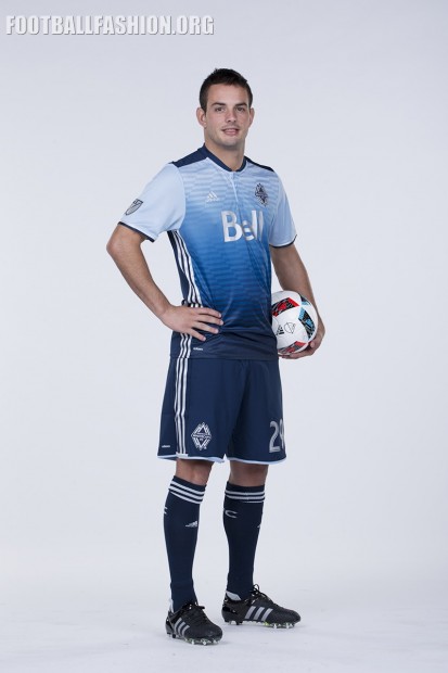 Vancouver Whitecaps FC launched their 2016 away kit from Major League Soccer official outfitter adidas on Monday. Called the “Sea to Sky” jersey, the shirt uses several shades of blue inspired by the the landscapes and seacoast of the Vancouver area. It will be available at World Soccer Shopand Kitbag.