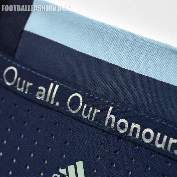 Other features of the Vancouver Whitecaps 2016 adidas away jersey are a Canadian flag embroidered on its signoff area, the text “Our all. Our honour.” on its neck taping and “Since 1974” printed on its lower left front.