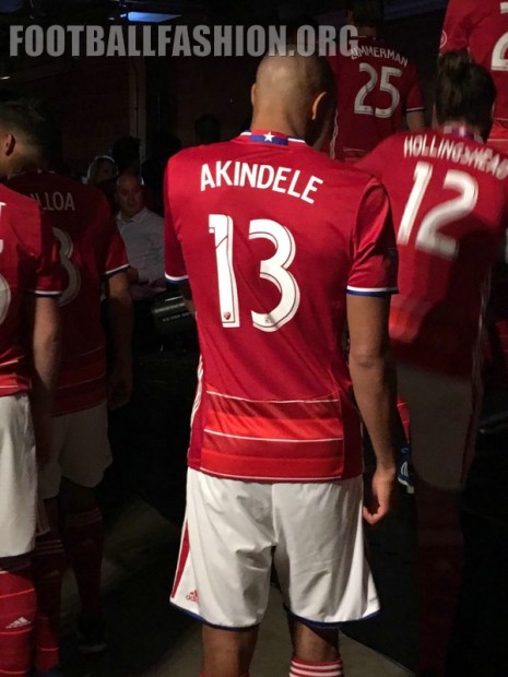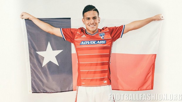 The FC Dallas 2016 adidas home uniform is completed by white shorts and red socks with white stripes.