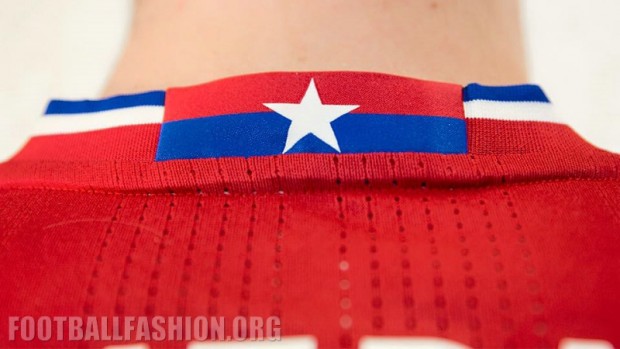 The sleeve cuffs and v-neck collar of the new FC Dallas home jersey are in the dark blue and white traditionally used for the team’s away kits (such as their 2015/16 change strip).