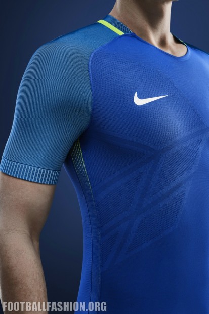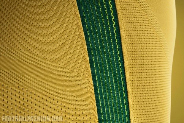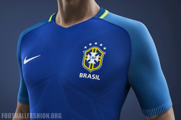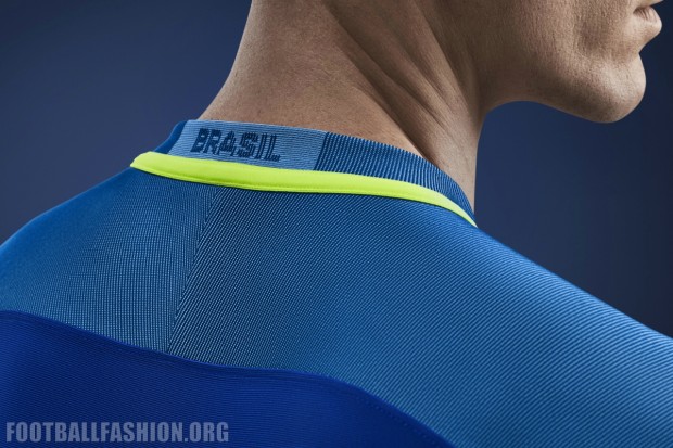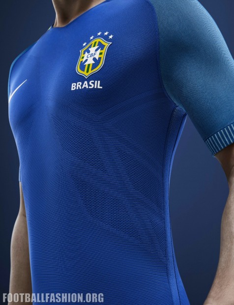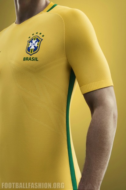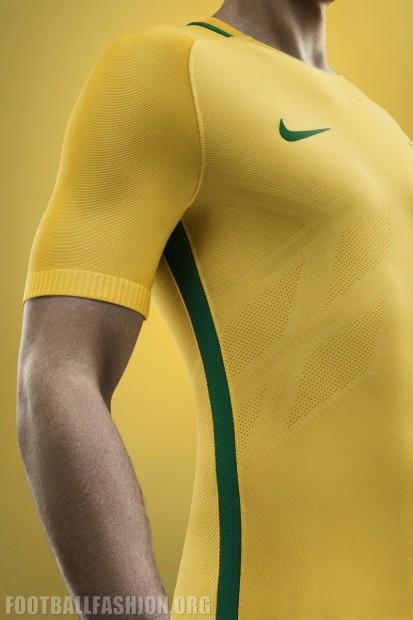 According to Nike: The most decorated nation in global football, Brasil, will step onto the pitch in 2016 in new home and away Nike Vapor kits with AeroSwift technology. The vibrant “Canarihno” yellow and vivid blue themes of the respective kits blend symbols of the country’s storied football history with cutting-edge Nike AeroSwift technology that enables on-pitch focus by reducing distractions.