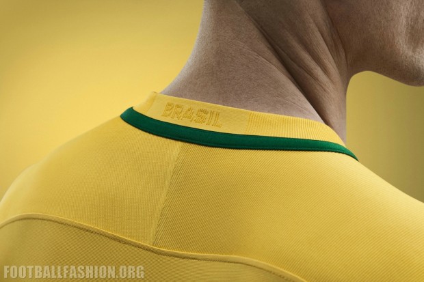 Odes to national pride appear on both the interior and exterior of the shirt. The high-density federation crest is heat pressed to the chest and surrounded by five stars. “Brasil” appears underneath the crest and is also knit into the back collar. “Amor” (Love) and “Orgulho” (Pride) adorn the inside cuffs while the inside of the body reveals the iconic diamond of the Brasilian flag encircled by the rallying cry “Nascido Para Jogar Futebol” (Born to Play Football).