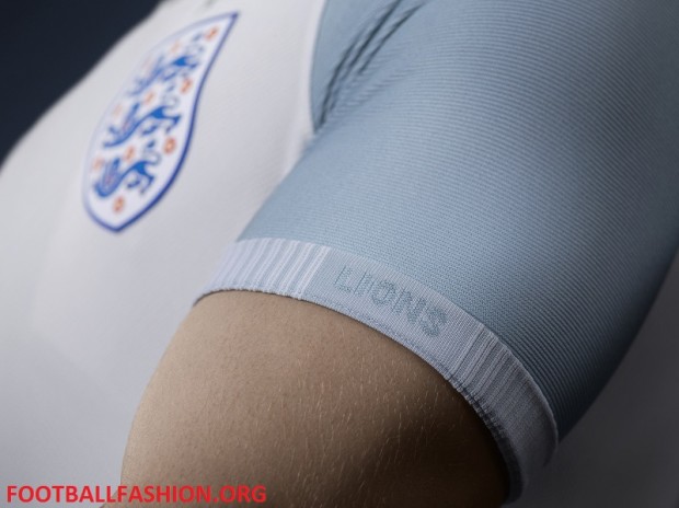 “For both kits, we set out with the goal of bringing together the colors that are synonymous with English football: white, red and blue,” explains Martin Lotti, Nike Creative Director. “Flashes of contrast are used to illustrate innovative details, such as the cross-dyed knitted sleeves and the ventilation-enhancing stripe on the sides of the shirts and shorts.”