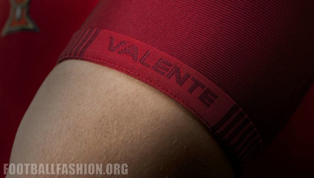 Symbols of Portuguese national pride appear on both the interior and exterior of the jersey. The high-density federation crest is heat pressed to the chest, and “Portugal” is knit into the back collar. “Nação” (Nation) and “Valente” (Brave), representing the adventurous spirit of the Portuguese, are knit into the inside cuffs while the inside of the body reveals an Armillary Sphere, a storied navigation tool that to pays homage to Portugal’s rich seafaring heritage.