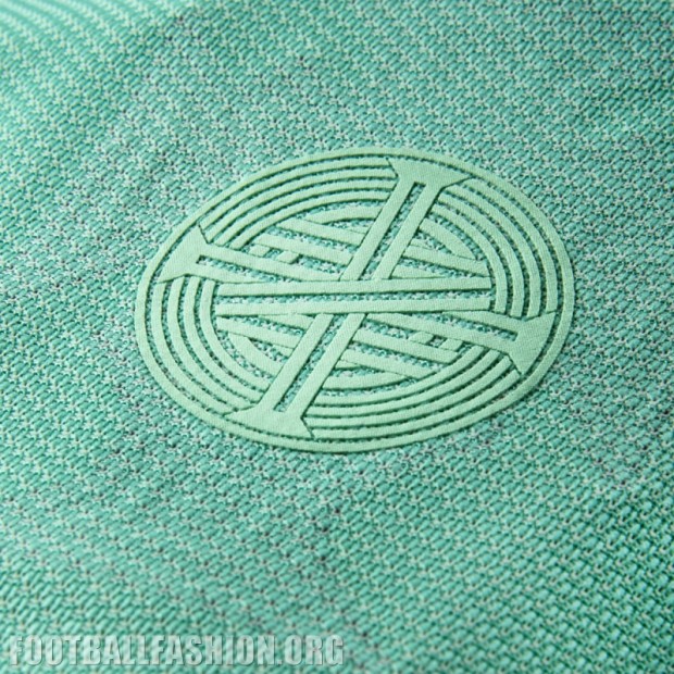 The groundbreaking away kit showcases the same innovations and design details as the home kit, but the new shirt’s bright body is offset by a darker tonal green across the sleeves and upper back. The new away socks are dark green with a red linear graphic on the calf.