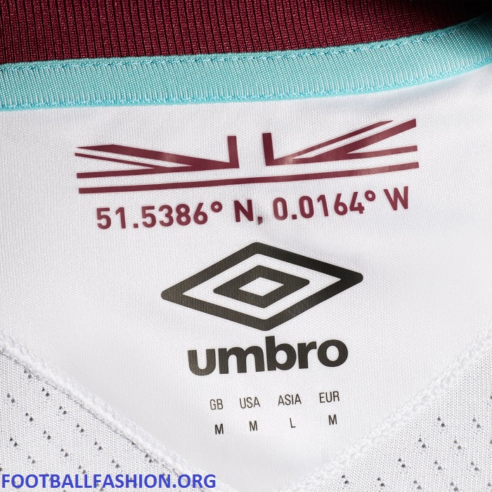 Trimmed in the famous claret and blue of West Ham United, the 16/17 away shirt celebrates the club’s new home of Queen Elizabeth Olympic Park via embroidery bearing its name and “2016 – 2017” under its badge. The ground’s co-ordinates (51.5386° N, 0.0165° W) are printed on the inside neckline beneath half of a stylized Union Jack.