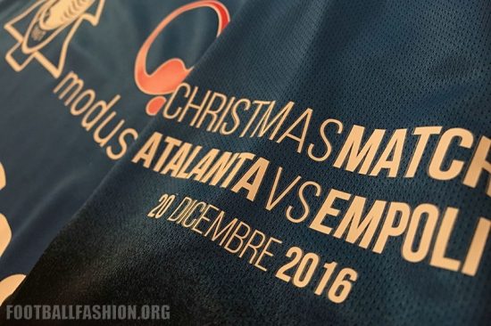 “CHRISTMAS MATCH ATALANTA VS EMPOLI 20 DICEMBRE 2016” is printed on the kit’s right sleeve. An Italian Serie A patch appears on the left sleeve.