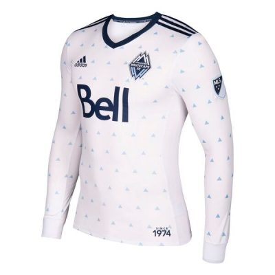 Available soon at the World Soccer Shop, Kitbagand UK Soccer ShopMajor League Soccer Stores, the kit is in the Whitecaps traditional primary white with blue detailing. It uses a new adidas shirt design featuring a ribbed v-neck collar.