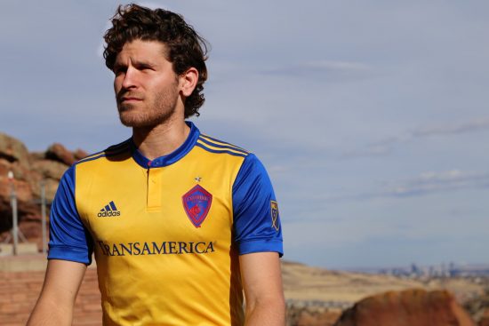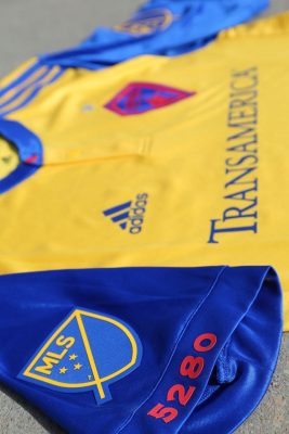 The Colorado state flag is printed on the upper outside back of the kit while the altitude of the Denver (5,280 feet) is printed on the right sleeve in red. The red letter “C” of the Colorado state flag is printed on the jocktag area of the shirt to reflect the Rapids pride in their Rocky Mountain state.