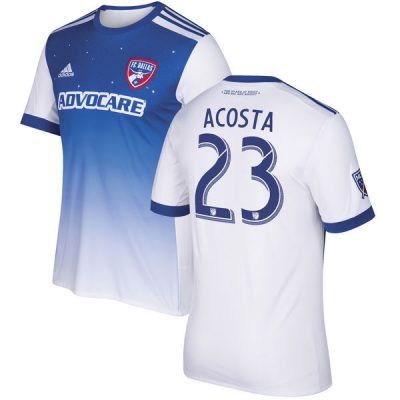 Revealed on Friday night, the FC Dallas 2017 adidas away kit has an all blue front and all white back. The flanks and sleeves of the jersey are also white. A series of eleven stars representative of FCD’s starting XI appear on the kit’s chest area. The blue background represents the Texas sky.