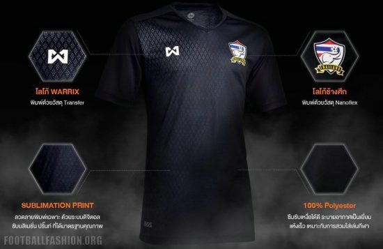 For the first time in their history The War Elephants will wear a black home kit in a departure from their usual primary blue. The 2017/18 Thailand away uniform is mainly white to contrast the home strip.