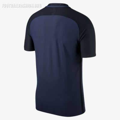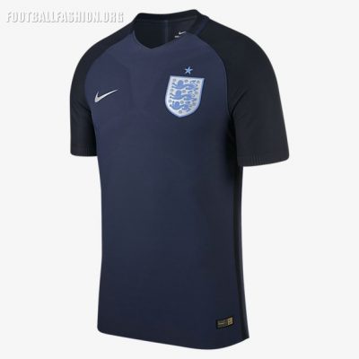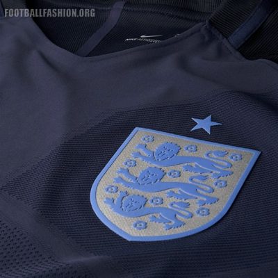 Set to be debuted by the men’s senior team against Germany on March 22, the England 2017 away kit is predominantly in shades of navy blue – a colour originally coined by the Royal Navy and last worn by England in 2012 – with bright flashes of a light blue harking back to the 1990 away shirt.