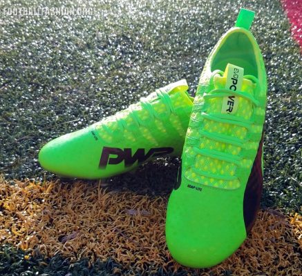 The PUMA evoPOWER Vigor 1 sees the synthetic, padded upper replaced with a sock / Adap-Lite combination. The result is a slip on boot that hugs the foot. The AccuFoam technology that has been a fixture of the evoPOWER series is still there but not as a layer under the Adapt-Lite. Instead it comes in the form of 3D foam dots that a present on both the sock and synthetic upper of the boot. PUMA says that they “regulate the uneven surface when the foot comes into contact with the ball, which maximizes precision when striking the ball powerfully”.