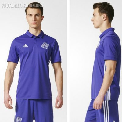 The Olympique Marseille 17/18 match range is completed by a purple polo collared third kit. Called a “lifestyle” shirt by the club, OM’s new change shirt has a two button placket, white adidas side stripes and one of Marseille’s classic crests.