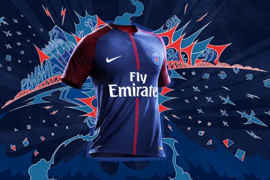 According to a release from PSG and Nike: The new PARIS Saint-Germain home kit for 2017-2018 allies cutting-edge Aeroswift technology with a contemporary aesthetic, reinterpreting the club’s heritage alongside a fresh application of its signature red, white and blue palette.