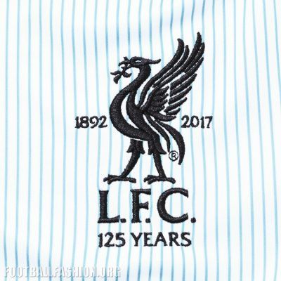 Inspired by Liverpool FC’s first ever strip worn 125 years ago in 1892, this special edition away kit incorporates the original light blue and white from the Club’s earliest shirt, updated with a quartered pin stripe repeat.