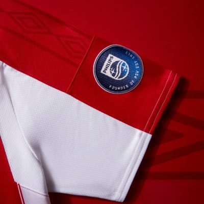 Umbro kit designer Bryony Coates commented: “Every season, it’s the challenge to give the home team some freshness without shattering PSV’s red-white look. This year we try that with a white stripe in the center of the kit and partially continuous stripes on the back. The shirt radiates PSV values, has a stronger historical origin, but is simultaneously fresh, contemporary and unique.”