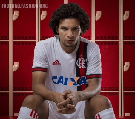 adidas Brasil has launched the 2017/18 away kit of former world club champions Clube de Regatas do Flamengo. The striking white shirt with a single band of the team’s red and black stripes is being worn by side in their ongoing Campeonato Brasileiro Serie A campaign.