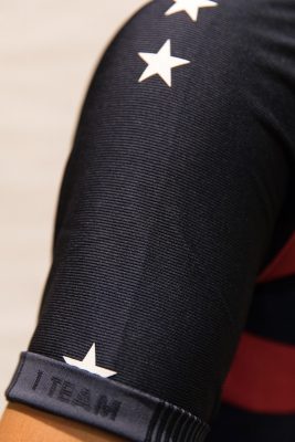 The kit features distinctly American design elements: bold red and navy stripes across the body of the shirt and tonal obsidian stars throughout. White silicon printed stars line the shirt sleeves, reinforcing the undeniably American characteristics of the kit.