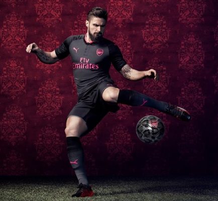 Modeled by first teamers etr Cech, Olivier Giroud, Laurent Koscielny, Alexandre Lacazette, Nacho Monreal and Mesut Ozil for its unveil, Arsenal’s 2017/18 third kit has a base in two tones of black.