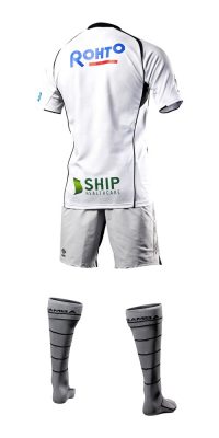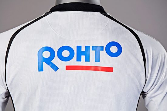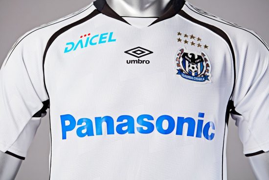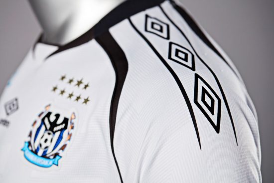 In Gamba’s famous home stripes and away white, new shirts will be available in authentic (made to same specifications for designs, materials, sewing as the jerseys issued to the club’s players) and replica models. Both use bespoke designs from Umbro Japan.