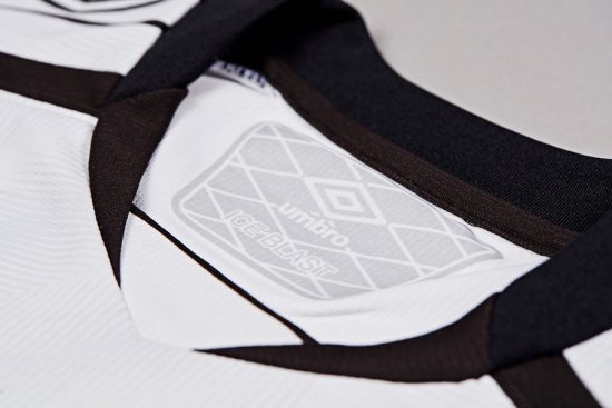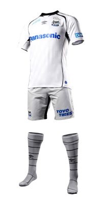 Gamba Osaka’s 2018 away kit uses the same template as the primary shirt. It is mainly white with black accents via its Umbro branding, collar, piping and flashes. The club says that the colors are meant to express lightness.