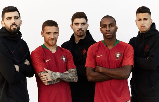 “The collection is inspired by the success of two years ago,” says Pete Hoppins, Nike Football Apparel Senior Design Director. “That comes through in the home kit with this concept of modern royalty. From Luis Figo to Cristiano, Portugal have a number of iconic characters who have led and united the squad.”