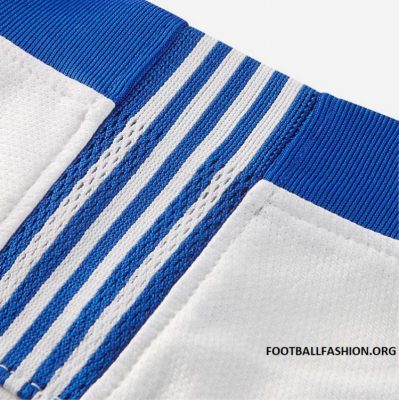 The Greek 18/19 Nike away kit is a classic white design with blue trimmings; the Hellenic football federation’s badge sits prominently on the shirt’s breast.