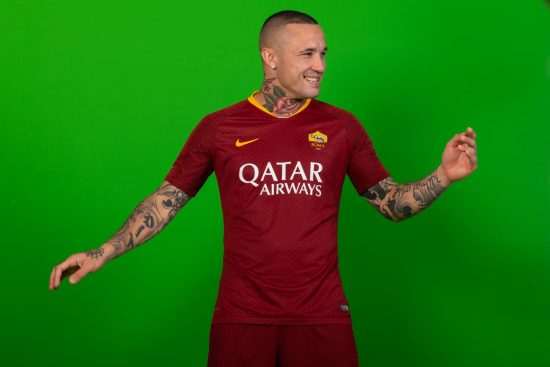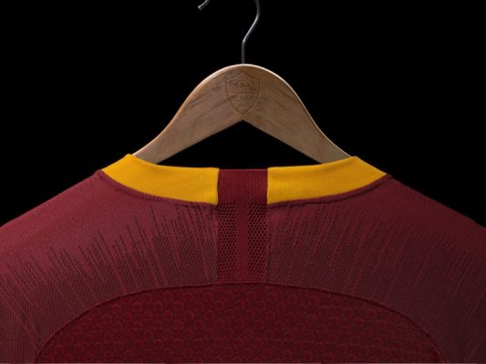The kit maintains AS Roma’s tradition of a burnt red base with yellow detailing. It uses a new Nike design that the American sportswear firm has assigned to all of its major sponsored federations and club.