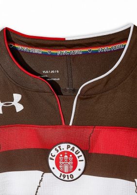 The recent hard-earned fight to avoid relegation from the German 2. Bundesliga is just beginning as FC St. Pauli and their innovative athleticwear partner, Under Armour, are gearing up for the 2018/19 season. Today, as part of their trip to the United States, FC St. Pauli were presented with their brand new home jersey for the upcoming season at the Under Armour headquarters in Baltimore, MD. FC St. Pauli’s eagerly anticipated new uniform will feature a rainbow stripe down the back and a credo reading “football has no gender” placed on the collar and back.