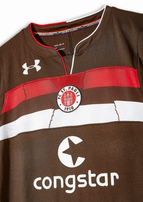 The new FC St. Pauli jerseys are made of Under Armour HeatGear® Material. Weighing just over 3.5 ounces, they are especially lightweight and come with the quick-drying Under Armour Signature Moisture Transport System. This four-way stretch material is incorporated into the jerseys and provides greater mobility and rapid drying. Ventilation holes are sewn into the jerseys where the body emits the most heat, ensuring cooling even in difficult weather conditions.