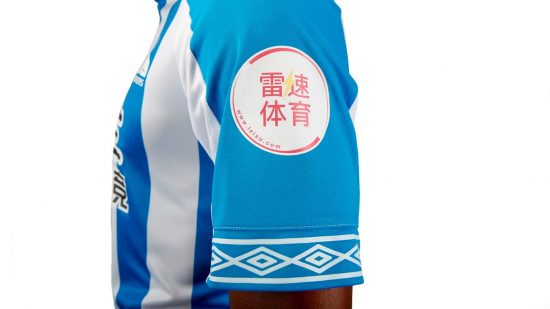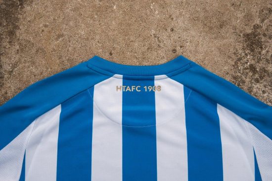 The Huddersfield Town 2018/19 home shirt uses a bespoke design from Umbro featuring the club’s customary blue and white stripes on its front and back. Like most of Umbro’s latest soccer jerseys, it has taping with the brand’s famous diamond logo repeated on its outside sleeve cuffs.