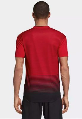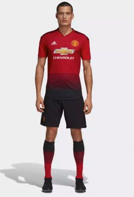 Rich structured engineered shell fabric is brought to life in a black to red fading on the Manchester United 2018/19 adidas home shirt, and is accompanied by black shorts and red and black socks. Alongside the replica jersey, there are also shirts specifically for children and women.
