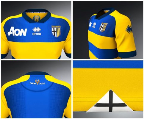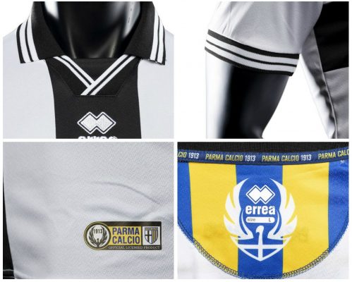 All three kits have a print of a Phoenix on their inside and outside necklines in reference to the Parma emerging from bankruptcy and dissolution over the past three years.