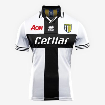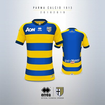 The Parma 18/19 away jersey uses the blue and yellow hooped look that has often been chosen for the team’s alternate jersey throughout its one hundred and five year history. The inspiration behind them are the stripes on the Parma crest and the colors of the flag of the city of Parma.