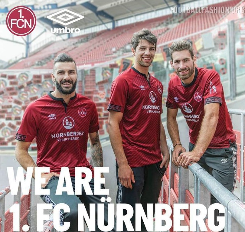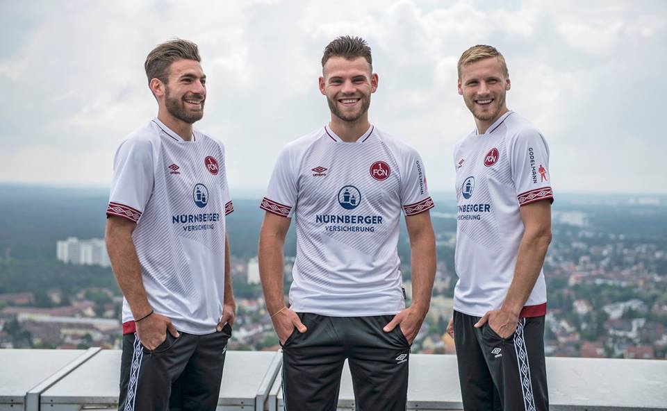 All three kits have 1. FC Nürnberg’s nickname of “Der Club” (The Club) printed on their outside, rear neck areas. The also feature the 1990s’inspired Umbro diamond sleeve taping that is a fixture on all of the sportswear firm’s 2018/19 footballl shirts.