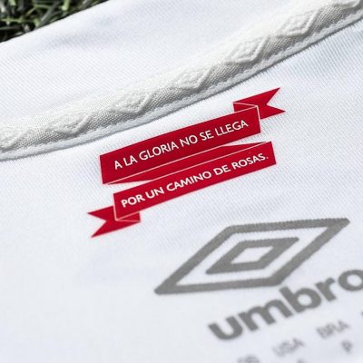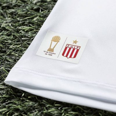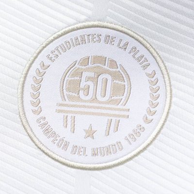 The crest on the jersey is a retro looking commemorative patch recognizing Estudiantes de La Plata’s sole world club championship. “A la gloria no se llega por un camino de rosas” (Glory isn’t reach on a road of roses) is printed on red banners on the inside neckline.