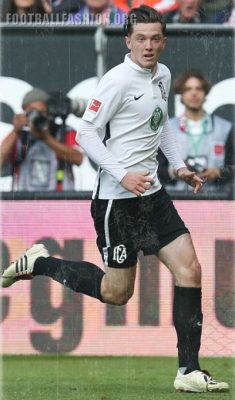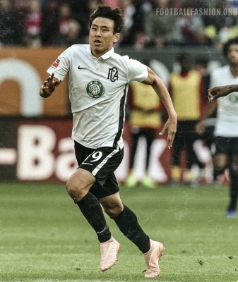 It has black details via the Nike Swoosh on its front and its side stripes. The kit features the original Augsburg crest.